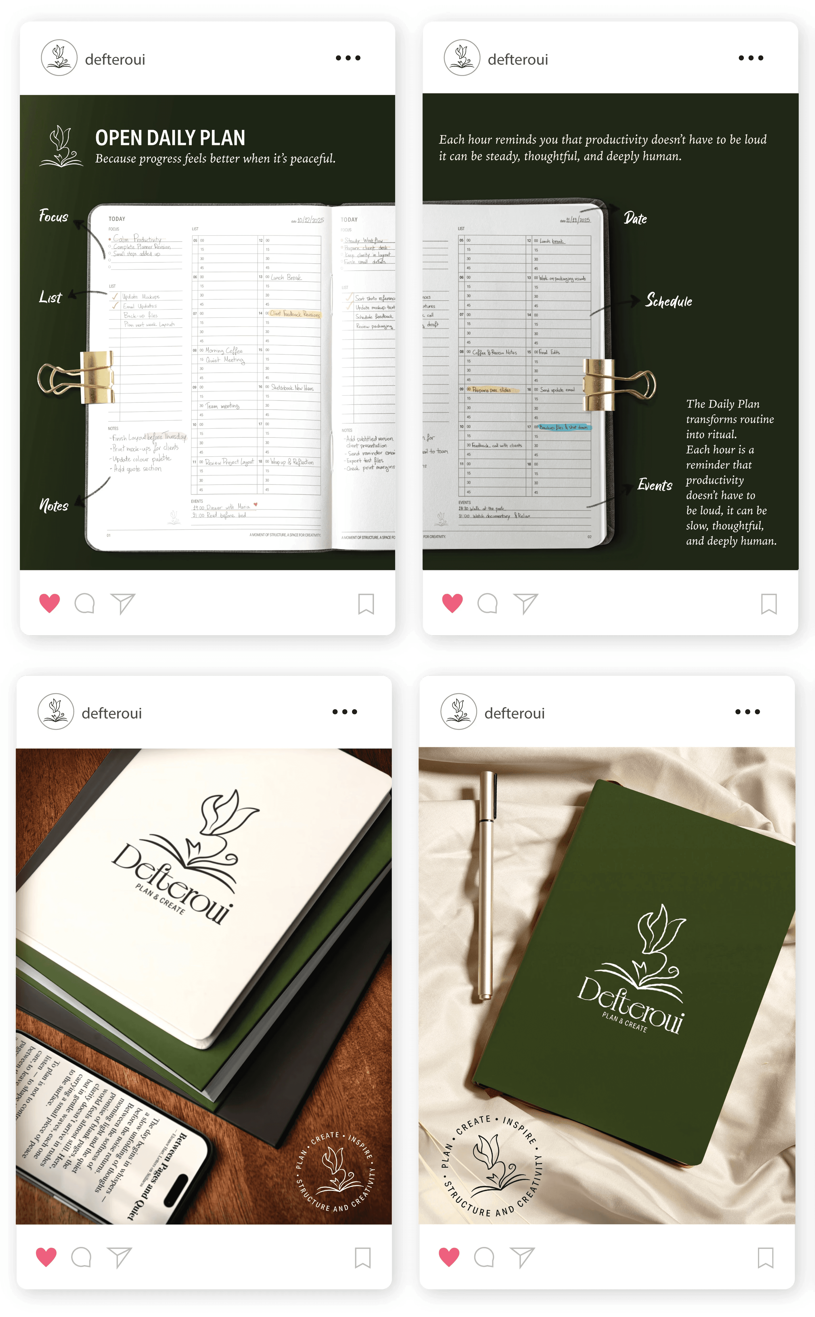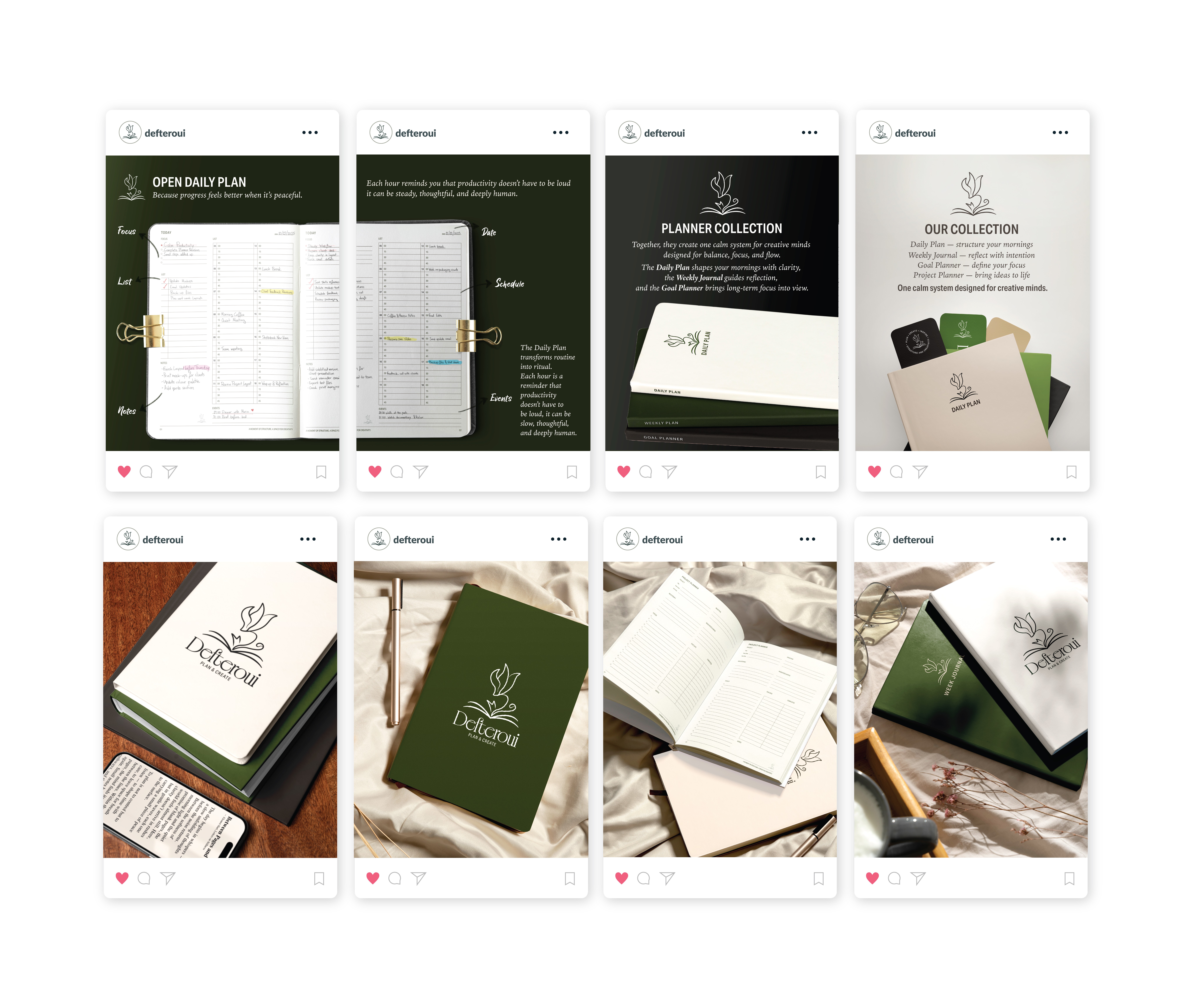 Defteroui is a Cyprus based brand specialising in diaries, planners, stationery, and gift items. As an early stage brand, the goal was to establish a warm and trustworthy visual identity that reflects creativity, personal organisation, and a strong connection to Cyprus’ local character.