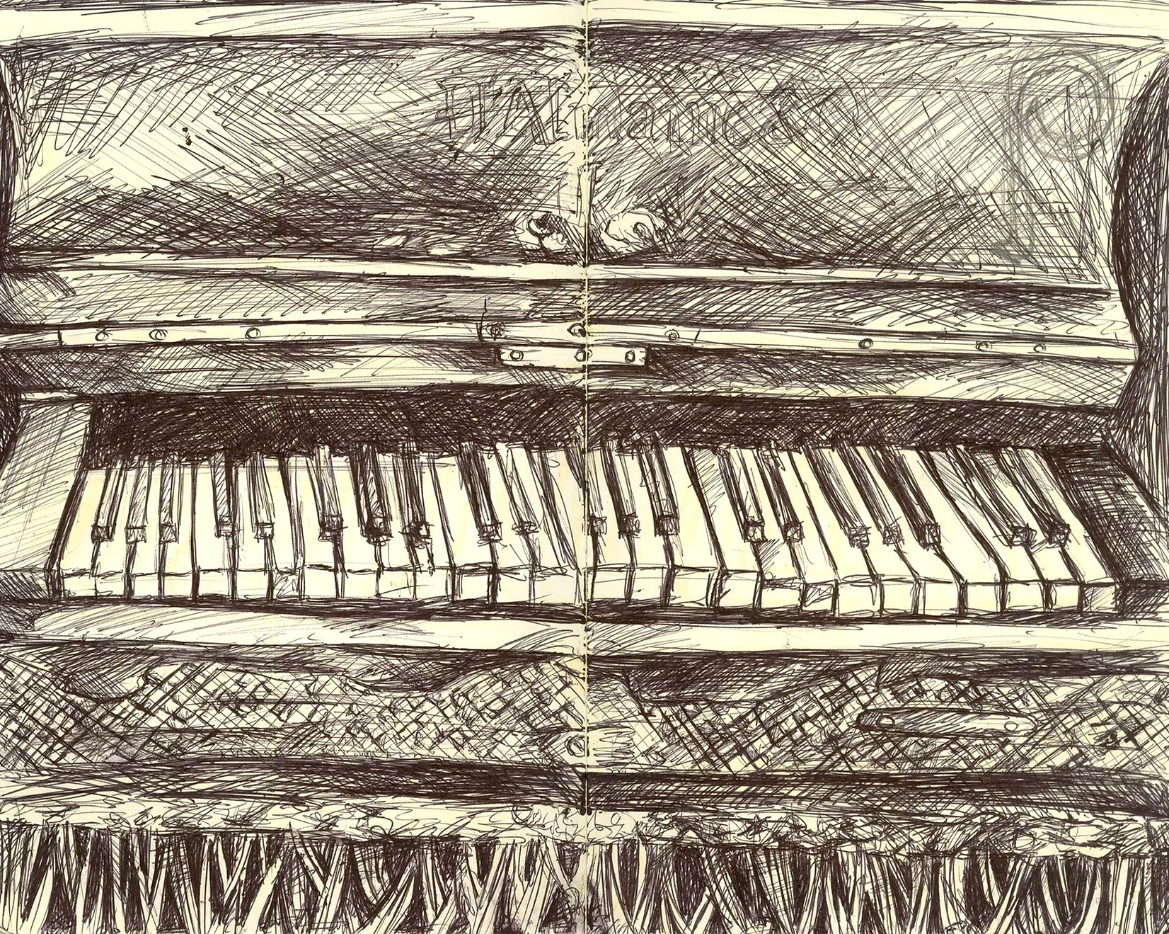 Early studies of musical instruments, exploring the visual rhythm of sound through observation and mark-making.