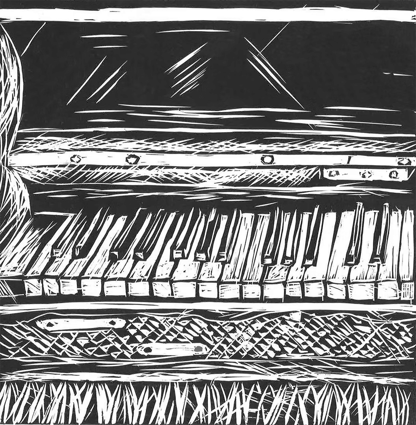 Later translated into linocuts, these works reflect the connection between music, motion, and repetition.